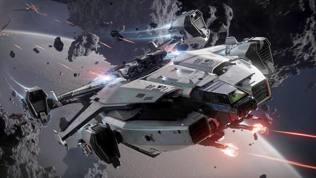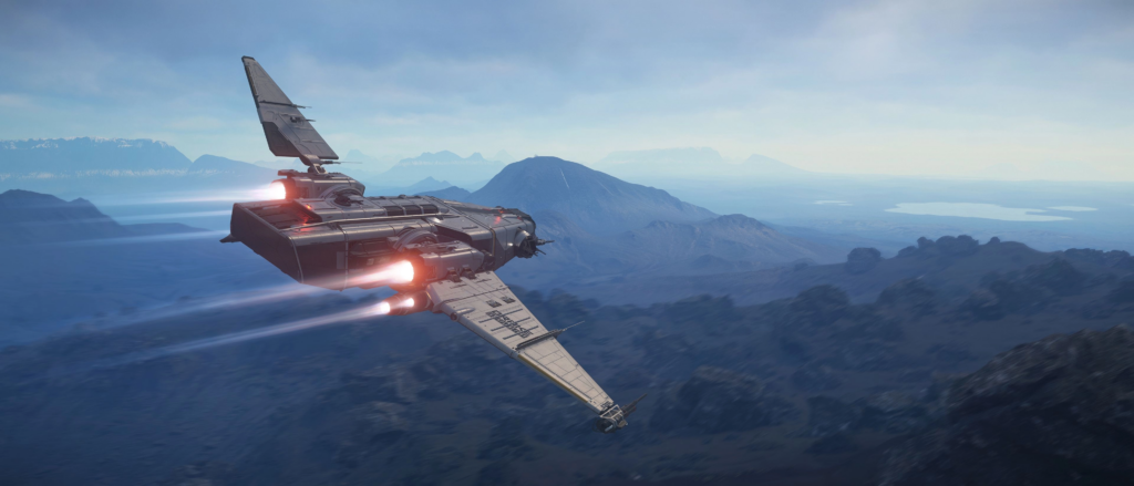 The Anvil Aerospace Asgard is a drop ship with a very decent cargo space for people, vehicles or cargo, and should be flown by two people, and maybe two door gunners. Though it can be flown by one Citizen too, if required. It’s biggest weakness is it’s unprotected rear, though it is still quite nimble in a pinch.
